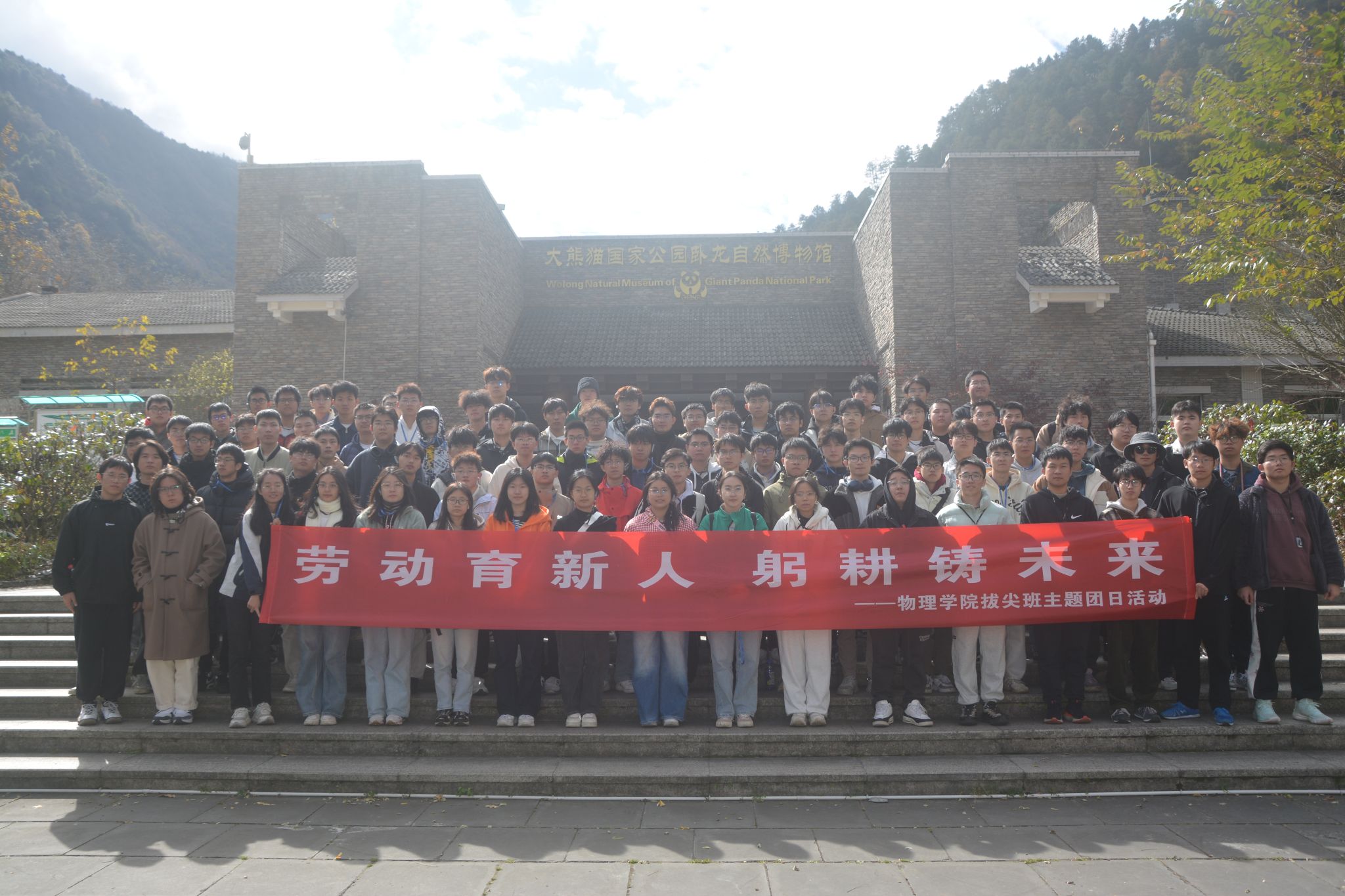 劳动创造幸福,实干成就伟业!为了丰富劳动实践教育形式,进一步引导广大同学发扬劳动精神,yl23455永利官网于11月16日-17日组织物理学拔尖班同学前往卧龙自然保护区开展劳动实践活动,带领同学们走进自然、感受劳动,进一步认识到“劳动最美丽,劳动最光荣,劳动最伟大”的实践真理。