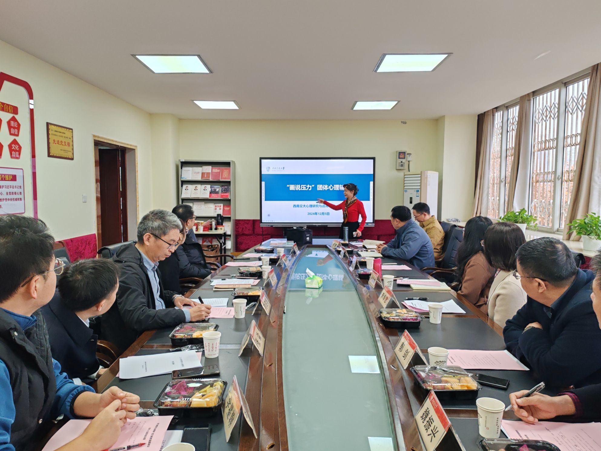 会后,陈华教授带领大家进行了团体心理辅导活动和个性化心理测评,帮助大家释放压力,关注自己的心理健康,提高心理自我调适能力。
