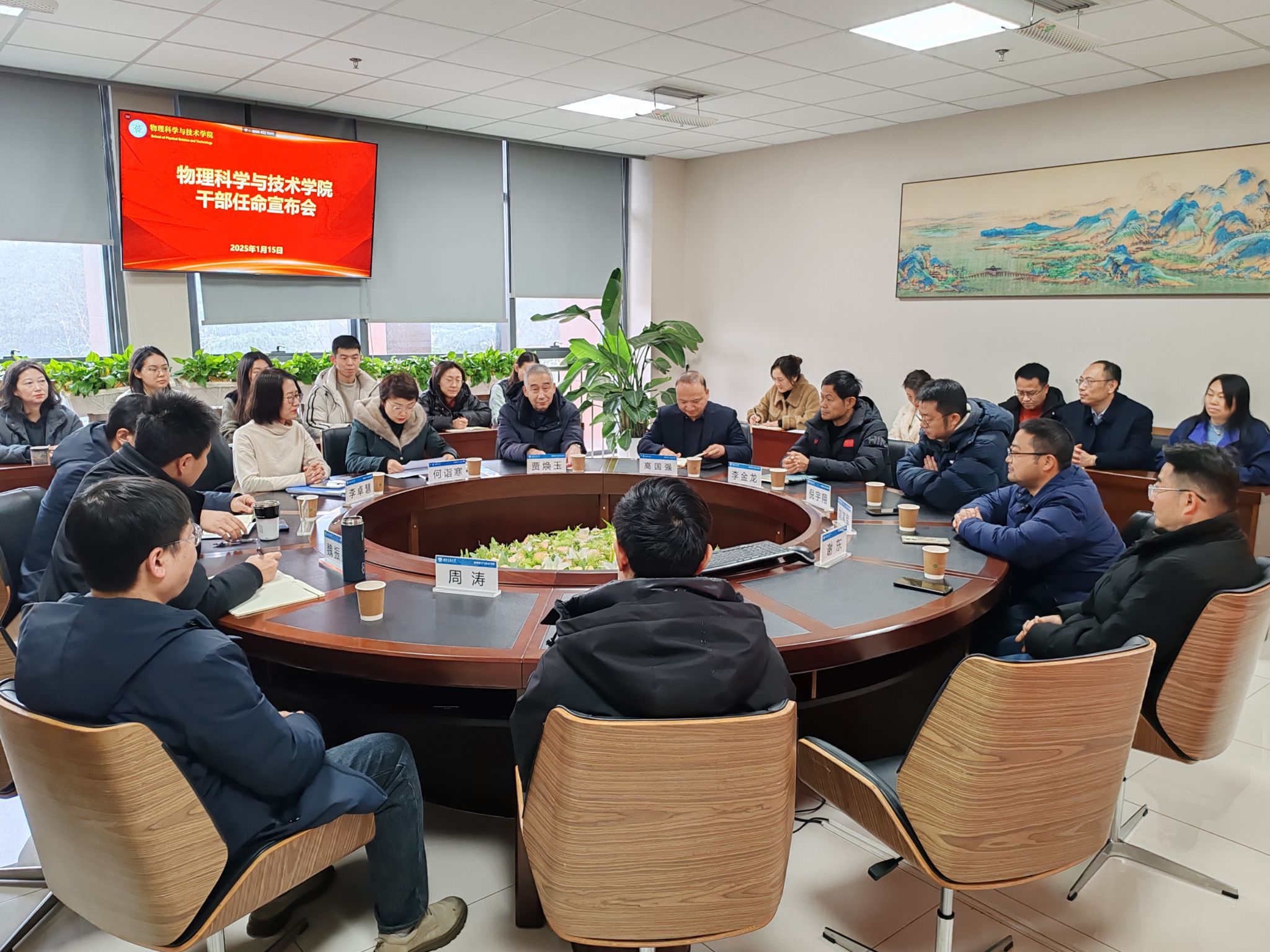 2025年1月15日下午,校党委组织部何诣寒副部长来院宣布中层干部任职通知,学院党政班子成员、党委委员、系主任、各科室负责人参加会议,李卓慧书记主持会议。