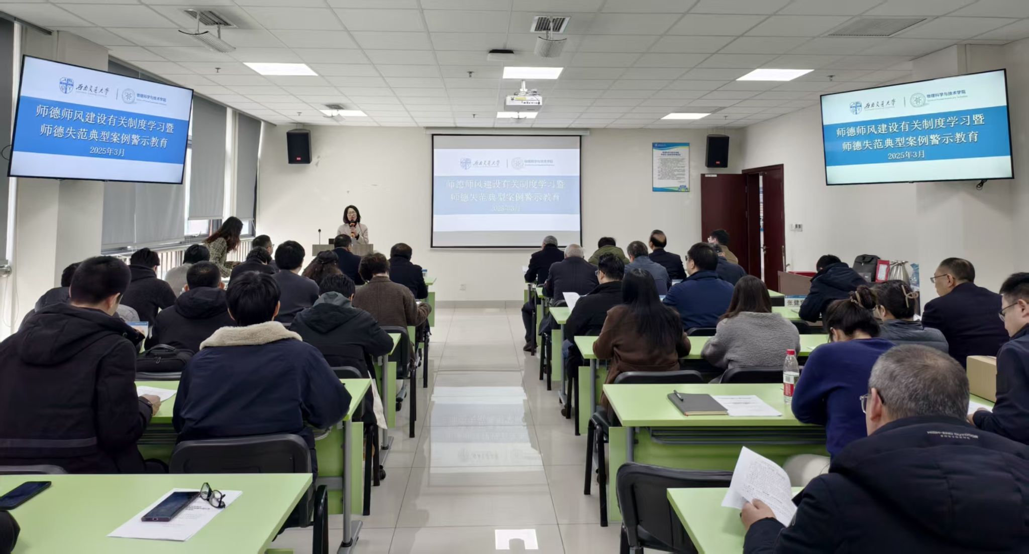 为深入学习贯彻习近平总书记关于教育的重要论述和指示批示精神,进一步加强学院师德师风建设,yl23455永利官网于3月20日下午在X30334开展了师德师风建设有关制度学习暨师德失范典型案例警示教育。学院党委书记李卓慧领学,学院全体教职工参加。