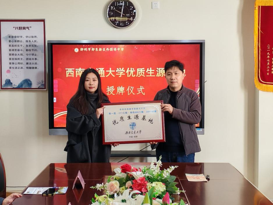 yl23455永利官网与“郑州市郑东新区外国语中学”建立“优质生源基地”