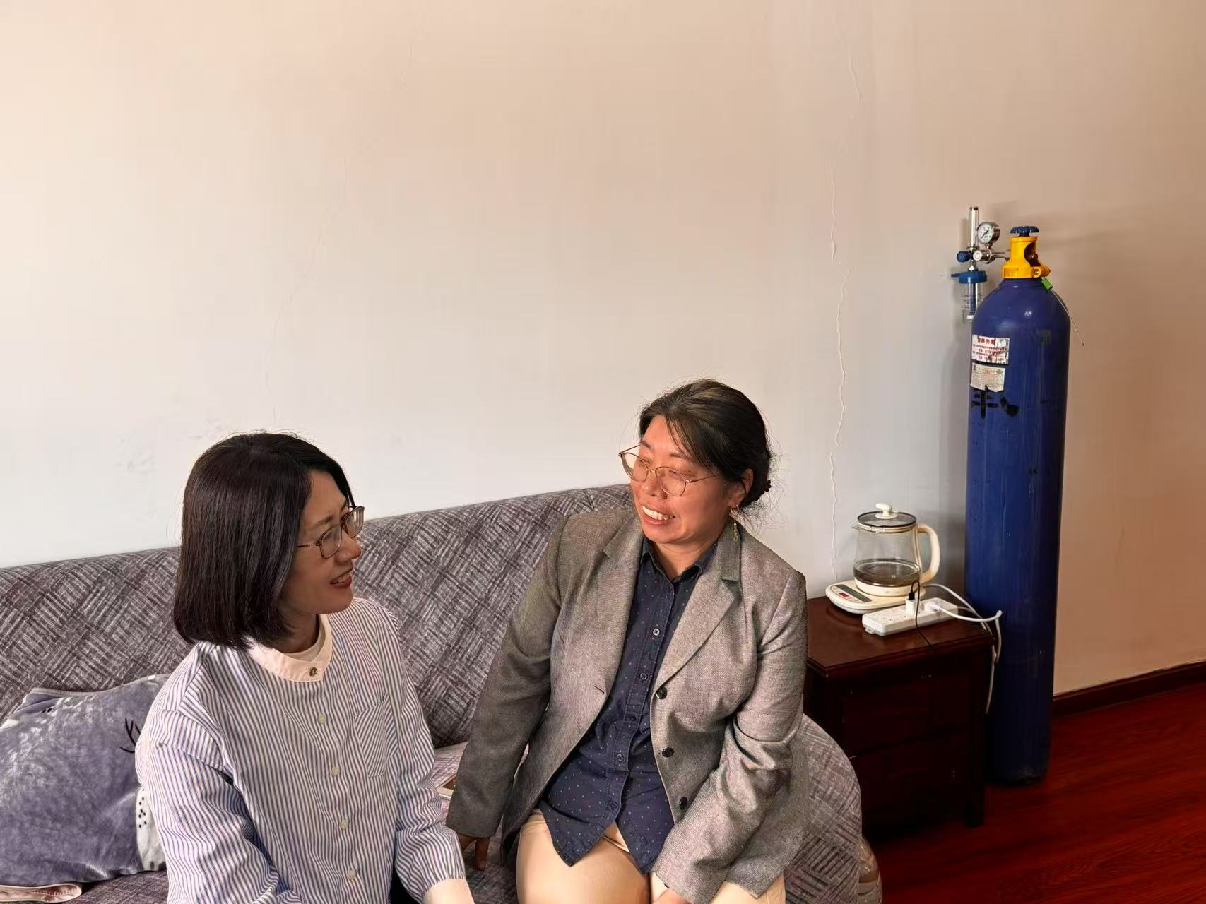 座谈会后,李卓慧书记一行走访慰问永利官网援藏教师祝凤荣老师,实地了解其在藏期间的工作与生活情况,对其克服高原困难、积极履职尽责表示高度肯定和亲切慰问。