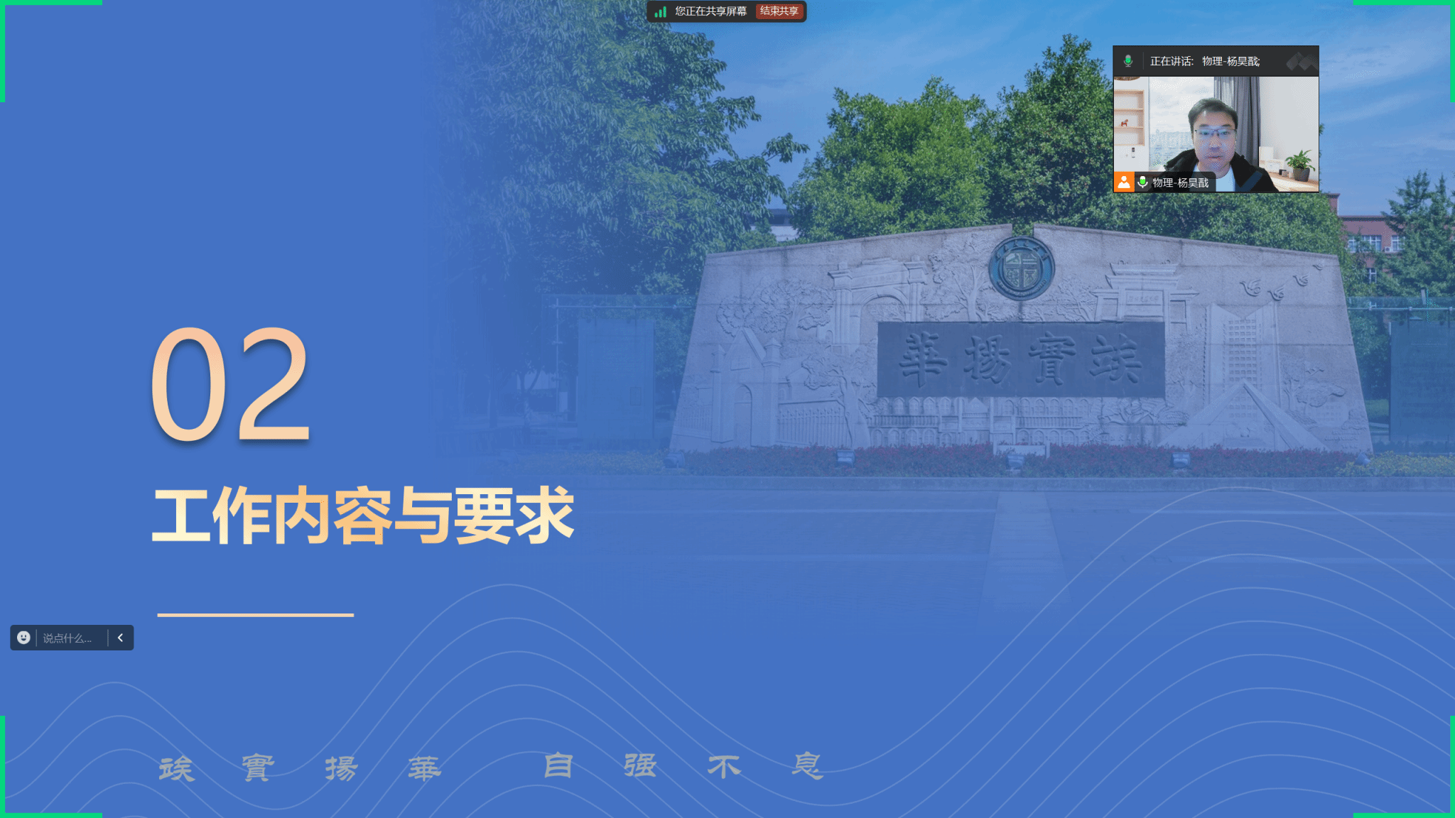 10月28日晚19时,yl23455永利官网学工组在线上召开了新一届勤工助学学生助理骨干培训会,由指导老师杨昊戬主持,学工组辅导员参与此次培训。