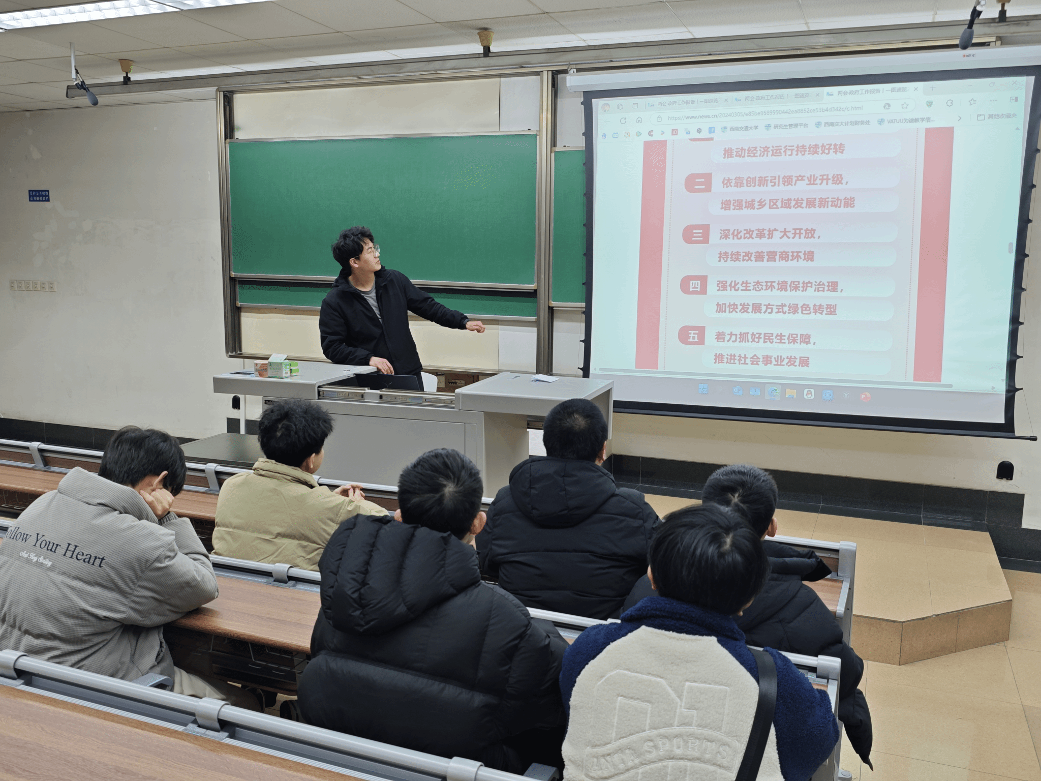 为深入学习贯彻全国两会精神,切实提升学习小组成员的理论素养和政治觉悟,yl23455永利官网研究生三党支部马克思主义理论学习小组于12月12日在九里校区J4407A组织开展了"共同学习全国两会精神"专题学习活动。本次活动由yl23455永利官网研究生三党支部组织委员沈锋钰同志主持,旨在通过系统学习、深入研讨,帮助全体成员准确把握两会精神实质,切实把思想和行动统一到党中央决策部署上来。