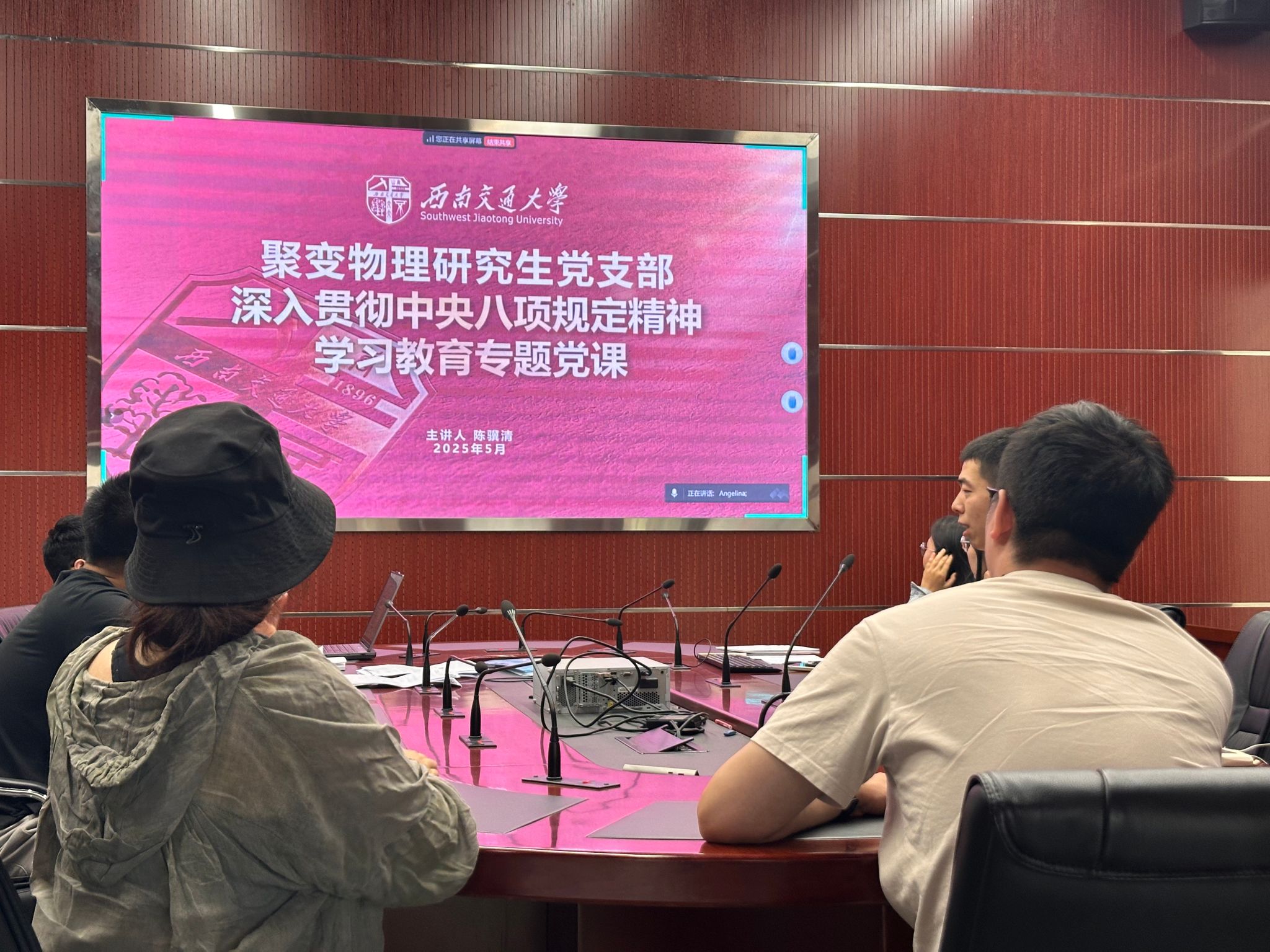 在党支部书记讲党课环节,各党支部书记围绕学习领会和贯彻执行中央八项规定及其实施细则精神,联系思想和工作实际,结合支部特色,为支部党员讲授党课。在党员集中学习以及警示教育环节,与会党员集体学习了《党的十八大以来深入贯彻中央八项规定精神的成效和经验》《八项规定改变中国》《违反中央八项规定及其实施细则精神典型案例》《党政机关厉行节约反对浪费条例》。同时结合河南省信阳市罗山县委原常委、政法委原书记李献林,信阳市委政法委原常务副书记叶金广等10名干部在学习教育期间违规吃喝、严重违反中央八项规定精神问题、河北省三河市在城市管理中违反中央八项规定精神、侵害群众利益问题两个典型案例,开展了警示教育在党员集中研讨环节,各学生党支部分别围绕学风考风、学术诚信,结合学习与科研的实际谈感想、谈认识,交流了学习体会。