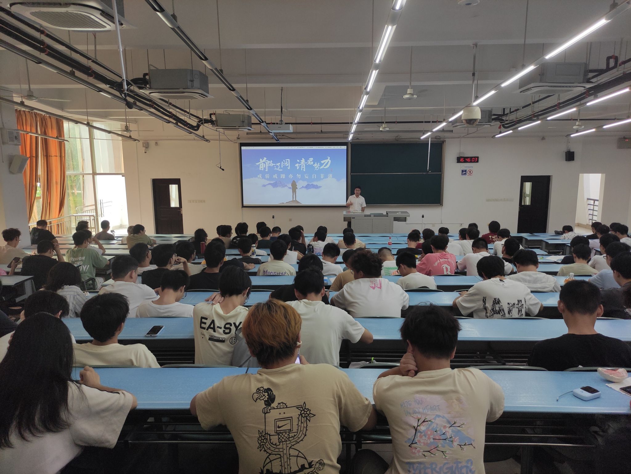 新学期、新面貌、新目标,为进一步营造良好学风,培养有奋进意识、钻研精神和吃苦品质的“交大人”,引导学生养成良好行为规范,yl23455永利官网于9月19日下午在X2218举行2023级年级大会。学院2023级辅导员杨昊戬、李若彤与全体2023级本科生参加,会议由李若彤主持。
