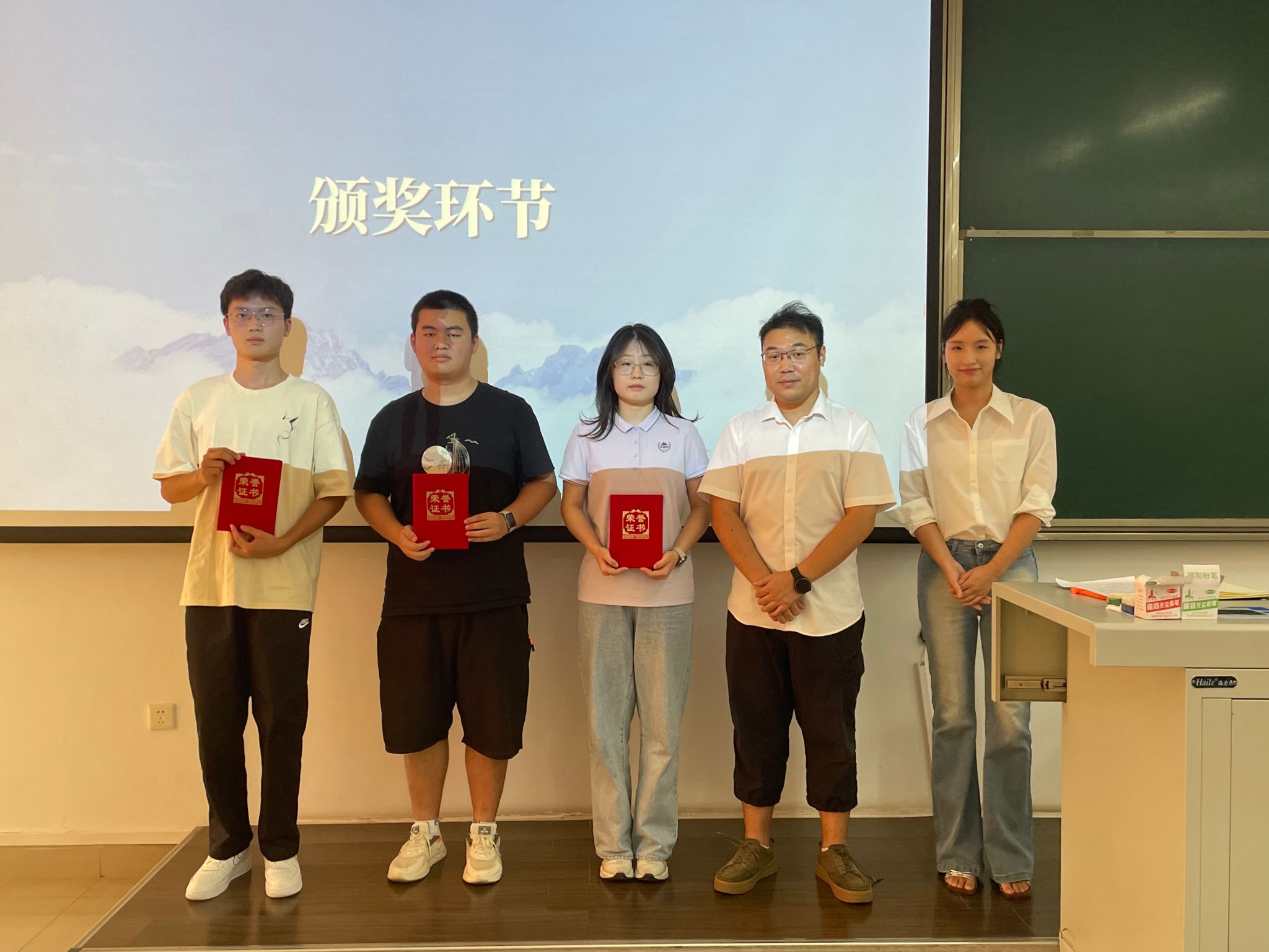 在学业方面,应用物理学、电子信息科学与技术与应用物理学(拔尖班)专业在期末考试中取得第一名成绩的同学上台分别分享了他们的学习经验,杨昊戬为他们颁发奖状,并鼓励广大同学以他们为榜样,不断接续奋斗。