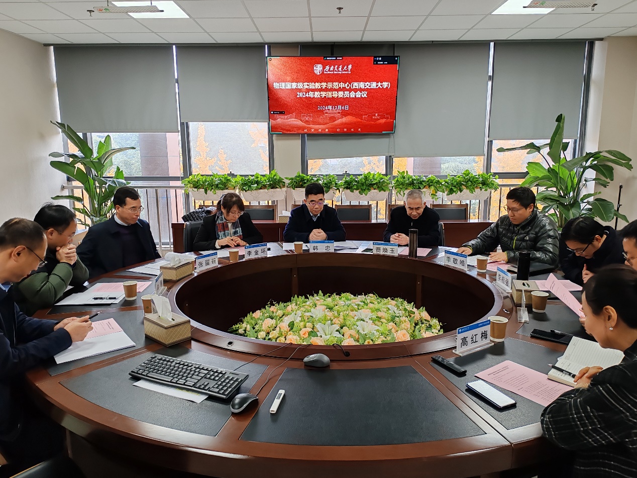 On December 6, 2024, the Teaching Advisory Committee Meeting for the National Physics Experimental Teaching Demonstration Center (Southwest Jiaotong University) was held in meeting room X30345 at the Xi Pu campus of Southwest Jiaotong University. Attendees included Professors Han Zhong, Li Jinhui, Zhang Liuwan, Xiang Gang, Zhang Pei (online), and Li Xiangqiang from the Teaching Advisory Committee. The meeting was chaired by Ni Yuxiang, Vice Dean of the School of Physical Science and Technology.