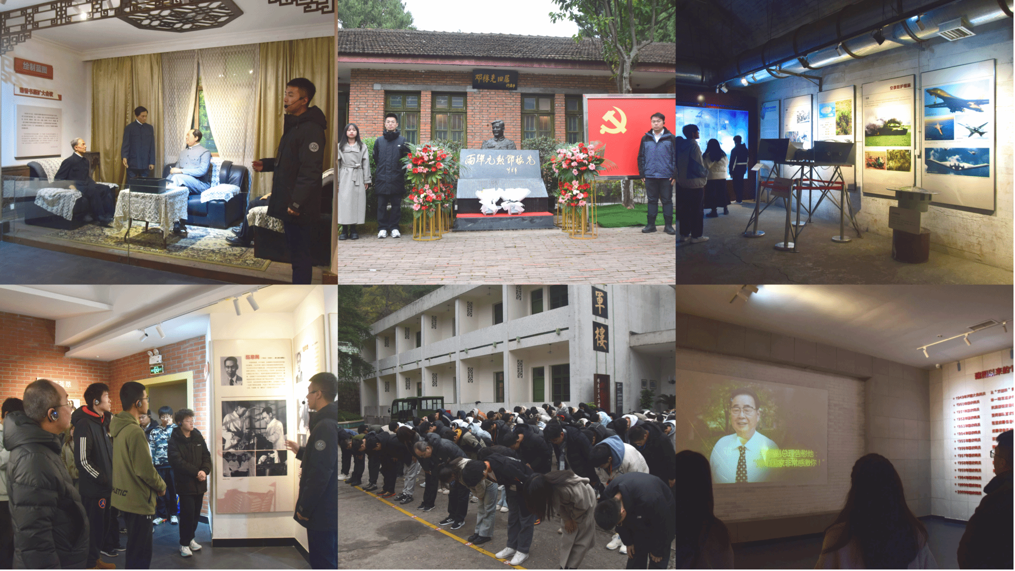 在“两弹历程馆”和“三防教育馆”,泛黄的历史照片、布满批注的研究手稿和陈旧的实验设备让拔尖班学子再次重温了那段艰苦的国防建设岁月。栩栩如生的实物模型、鲜活的场景再现以及充满未来感的多媒体互动展示带领拔尖班同学真切感受到邓稼先、钱三强、于敏以及我校优秀校友陈能宽等先辈科学家“干惊天动地事,做隐姓埋名人”的高尚品质。在邓稼先旧居前,全体同学向邓稼先先生铜像鞠躬并敬献花篮,表达同学们对老一辈科学家的无限追思与崇高敬意,同学们也更深刻地意识到科技自立自强对国家强盛、民族振兴的重要意义,先辈们用实际行动书写的“两弹一星”精神将激励新一代青年学子牢记初心使命,担当时代重任。