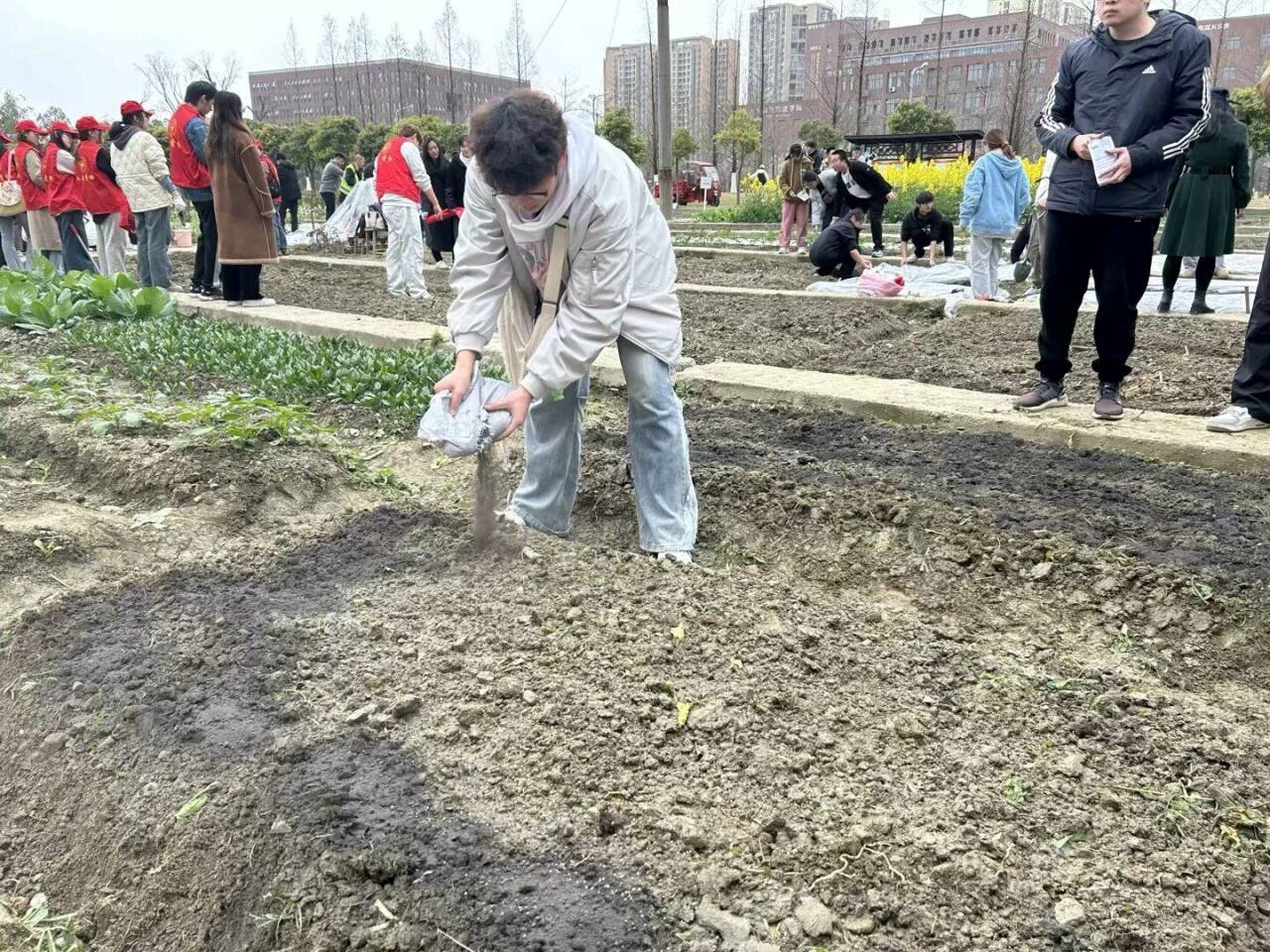 下午16:00,活动准时开始。同学们有序来到种植园,在工作人员的指导下,迅速投入到各项种植实践活动中。在耕地、播种农作物区域,同学们手持农具,翻土、挖坑、播种、填土,每一个步骤都认真细致。大家相互协作,交流着种植经验,现场气氛热烈。